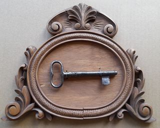 Llave original del siglo XIX procedente de la Sacristía de la Iglesia de Madre de Dios de Almagro (C/Real). Colocada sobre una antigua tablilla. Pieza única de colección muy decorativa con el desgaste propio de su antigüedad N.º 3 DE LA COLECCIÓN DE 4 LLAVES, CON HISTORIA, MONTADAS SOBRE TABLILLAS. - Llave de metal con detalles. - Tablilla de madera con tallado. - Elementos decorativos metálicos. Medidas de la llave: 13,5 cm. Medidas de la tablilla: 20,5 x 15,5 cm. Más y variados artículos en mi perfil.