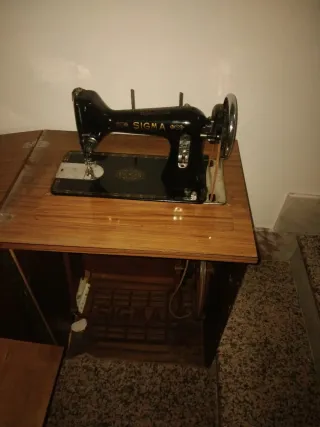 Máquina de coser Sigma clásica con funcionamiento a pedal. Un modelo antiguo con un diseño elegante. - Marca: Sigma - Tipo de funcionamiento: Pedal - Material: Metal - Color: Negro