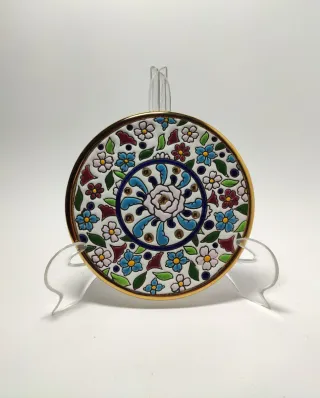 Precioso plato decorativo vintage de la Ceramo Sevilla pintado a mano en esmalte y oro de ley, tiene un diseño floral y detalles en relieve. - De los años (70-80) - en muy buen estado de conservación como se puede apreciar en las fotos - Borde dorado. - Motivos florales en colores vivos. - Base blanca. - Hago envío bien embalado y protegido.