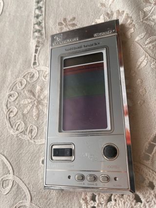 Consola portátil clásica de Nintendo. - Diseño plateado. - Pantalla LCD. - Botones de control.