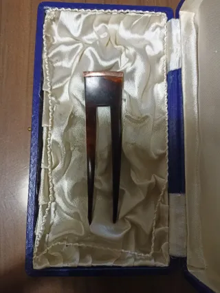 Elegante peineta de carey con detalles en oro de 14 quilates. Una pieza clásica y sofisticada. - Material: Carey y oro 14k. - Diseño: Peineta de dos púas.