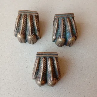 Envío por Inpost, Seur y GLS. Lote de tres patas decorativas fabricadas en bronce macizo. Diseño tipo garra de león con detalles de plumas en relieve. Presentan pátina natural por el paso del tiempo. Base cuadrada con orificio para tornillo.Buen estado general, con signos normales de uso y envejecimiento. No rotas ni deformadas. #bronce #patasdeleon #mueblesantiguos #restauraciondemuebles#decoracionvintage#antigüedades #decoraciónclásica #herrajesantiguos#vintagehome #mueblesconhistoriaantiquités #deconvintage#bronzeancien #maisonvintage #meublesdecaractère