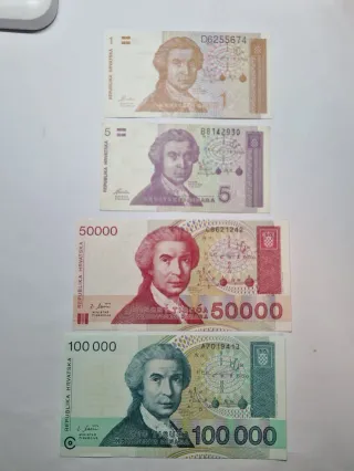 Lote de billetes de Dinares de Croacia de 1, 5, 50000 y 100000 buen estado. Ideal para coleccionistas, aficionados a la historia o quienes buscan piezas con valor sentimental. Puedes combinar varios billetes de mi perfil para ahorrar en el envío. Envío: Correos ordinario por solo 1 € o certificado por 5 € (con responsabilidad del comprador). . Coleccionismo, numismática, antigüedades, billetes antiguos, coleccionables, colecciones, coleccionismo, lote, moneda, monedas, filatelia, notafilia, billetes, billete.
