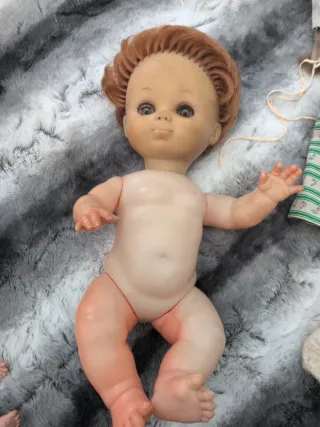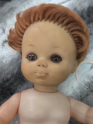 Muñeca vintage de plástico con pelo pelirrojo y ojos grandes. - Cuerpo de plástico. - Pelo sintético de color pelirrojo. - Ojos grandes y expresivos.