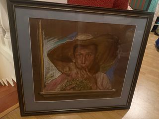 Tiene el marco de madera no lleva cristal pintado en papel el dibujo son unos niños es antiguo no ago envios entrego en mano