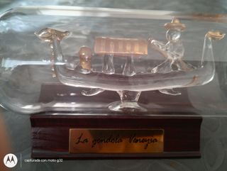 Botella con la góndola de Venecia y soporte de madera. Nueva. Medidas 20×5cm.