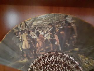 Precioso abanico antiguo con una escena pintada. - Diseño detallado. - Marco con adornos plateados.