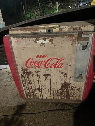 Nevera antigua de Coca-Cola, un clásico para coleccionistas. Se encuentra en mal estado, pero dos motores funcionan ideal como decoración. - Diseño icónico de Coca-Cola. - Color rojo característico. - Ideal para decoración vintage.