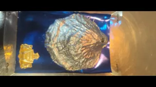 Preciosa concha decorada con una imagen religiosa del Niño Jesús rodeado de uvas y flores. Ideal como recuerdo o detalle. - Imagen del Niño Jesús con aureola. - Decoración con motivos vegetales y uvas. - Base de terciopelo azul. - Placa dorada con Creazioni Benna.