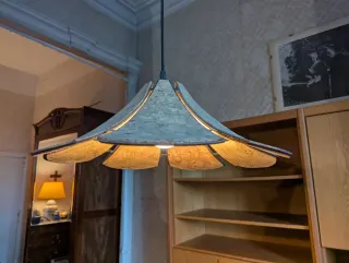 Tulipa de cristal con un diseño Art Decó vintage, elaborada a mano. Su forma cónica y el relieve texturizado le otorgan un carácter único. Lampara - Diseño con motivos vegetales o escamas. - Acabado translúcido.