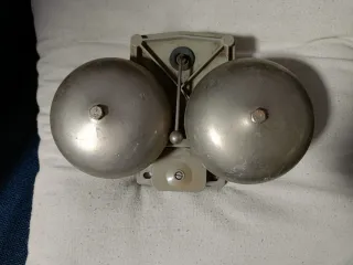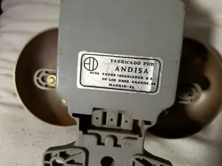 Timbre antiguo de doble campana de la marca Andisa. Un objeto con un diseño clásico y robusto. - Dos campanas metálicas. - Mecanismo de percusión central. - Base de montaje metálica.funcionando perfectamente