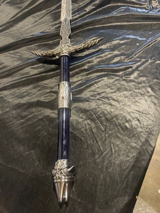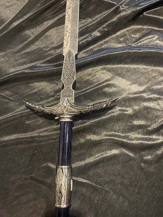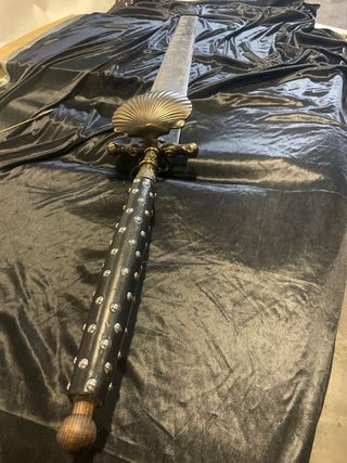 Espada decorativa inspirada en el Rey Brujo, con una longitud de 140 cm. Presenta un diseño detallado y ornamentado. - Empuñadura con detalles plateados. - Hoja con grabados. - Diseño de fantasía.