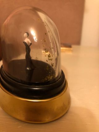 Frasco de perfume vacío de la marca Jean Paul Gaultier. Presenta una figura femenina en su interior. - Diseño elegante. - Base dorada y negra.
