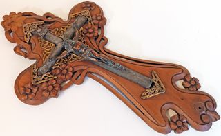 CRUCIFIJO en MADERA y METAL (c. pp. s. XX)