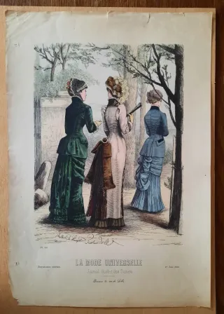 Lámina original en cromolitografía de La Mode Universelle, 1883, Journal illustré des Dames. Ideal para coleccionistas de historia del traje. Buen estado de conservación general, con señales del paso del tiempo y bordes ligeramente deteriorados. Mira más láminas antiguas en mi perfil, precio reducido por varias.