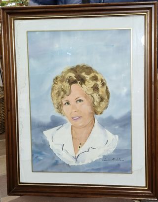 Precioso retrato pintado a acuarela de una mujer con cabello rizado y vestimenta blanca. Marco viejo, paspatu algo deteriorado, si te pareces lo cambias, retrato enrme ,,, luz37,5 por 52,00 con marco 55,5x69,5cm. - Firmado por el artista. - Marco de madera incluido.