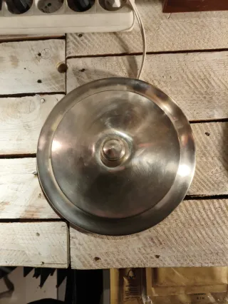 Esta es una tapa antigua, ideal para cubrir y servir alimentos en la mesa. Su diseño clásico añade un toque vintage a cualquier presentación. Tenía un baño de plata que ha perdido casi en su totalidad. Tapa para fuente de alimento vintage con logotipo de hotel grabado. A mí entender, el pomo si podría ser de plata, pero no soy entendida. - Material metálico con acabado plateado. Diseño de principio de sxx. - Presenta un pequeño pomo central para facilitar su manejo. Medida 28cm de diámetro. B