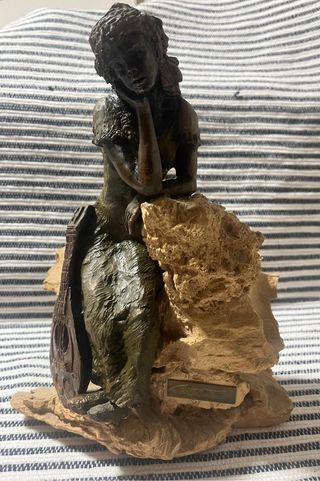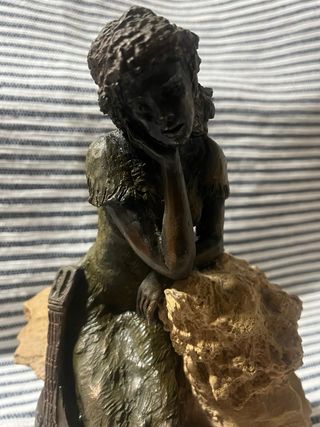 Escultura de Toni Camps realizada en bronce y piedra. La pieza representa a una mujer sentada con un instrumento musical. - Materiales: Bronce y piedra. - Diseño detallado. - Peso 2.172 Kg