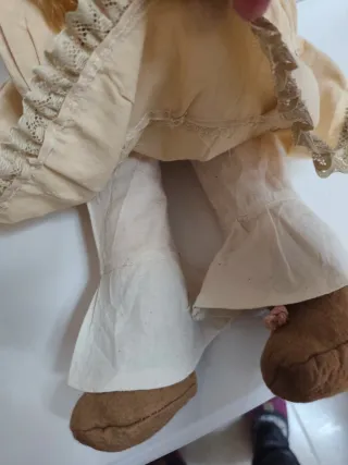Preciosa muñeca de tela, ideal para coleccionistas o como decoración. - Fabricada completamente en tela. - Diseño vintage encantador.