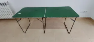 Mesa plegable de color verde, ideal para actividades al aire libre o como espacio extra. - Superficie de color verde. - Estructura metálica plegable. Mesa plegable para camping de los años 60 del siglo XX. La vendo como antigüedad. Tiene más de 60 años! Medidas: 140cm x 50cm IDEAL PARA LA PLAYA, CAMPING, CAMPERS, CARAVANAS Y AUTOCARAVANAS VINTAGE!!! Con envío disponible. No acepto devoluciones