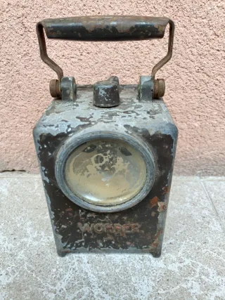 Buscas autenticidad? Vendo linterna ferroviaria Wonder Type Agral de mediados de siglo. Nada de réplicas ni restauraciones modernas: metal real con su pátina y desgaste original. Joyas ocultas: Conserva la bombilla de repuesto original en su soporte interno y las pletinas de contacto. Doble cara: Foco delantero blanco y visor trasero rojo "nido de abeja". Robusta: Casi 1 kg de peso (878g) de puro hierro vintage. Estado: Muy vieja, con marcas de uso que cuentan su historia. Perfecta para decoración industria !Tengo más antigüedad en mi perfil!