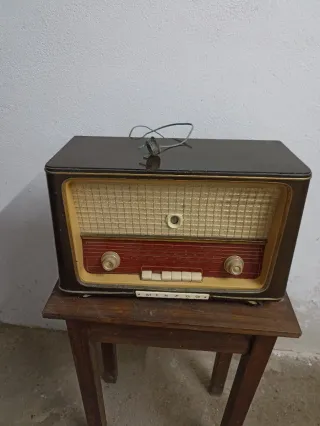 Ràdio antiga amb carcassa de fusta per restaurar.