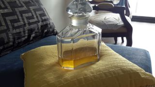 Elegante botella de cristal con un diseño clásico, perfecta para coleccionistas. - Material: Cristal. - Estilo: Antiguo.