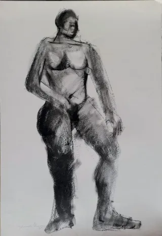Joan Granados Llimona (1931-2005) – Dibujo original firmado. Mujer de pie al natural (1995). Carboncillo sobre papel, 65x45cm. Artista barcelonés premiado internacionalmente, formado en la Llotja de Barcelona. Obra expuesta en España y en el extranjero. Buen estado. Se entrega con factura de compra. Se vende sin enmarcar. 📩 Escríbeme para más fotos.