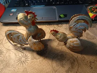 Antiguos gallos metalizados decorativos