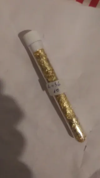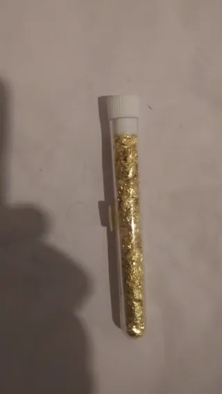 Este tubo contiene virutas de oro de 22 quilates.Tubo de plastico fino relleno de oro en virutas, con un peso de 5gr - Material: Oro de 22k - Presentación: Tubo sellado
