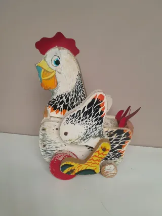 Gallina de madera antigua con ruedas Juguetes REIG