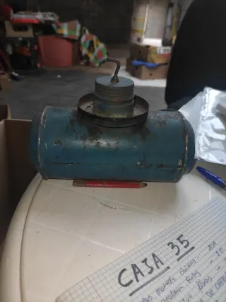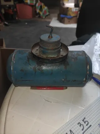 Lámpara de carburo antigua, datada del siglo XX. Un objeto con historia. - Modelo C35. - Cuerpo metálico de color azul.