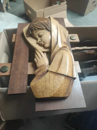 Preciosa talla de madera noble que representa a un Jesús de perfil. Una pieza con un diseño delicado y expresivo. - Talla en madera noble. - Representación de Jesús de perfil. - Pieza de arte religioso.