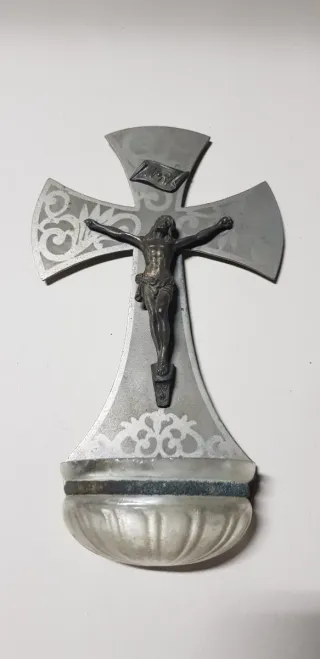 Crucifijo de pared con pila de agua bendita