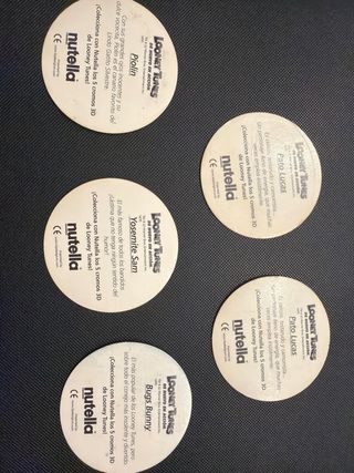 Colección completa de los personajes de Looney Tunes de Nutella. Son 5 figuras. Son los españoles. - Personajes de Looney Tunes. - Edición especial Nutella. Tazos Adhesivo Lenticular Holografico