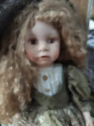 Preciosa muñeca antigua de cerámica, con un diseño clásico y detallado. - Fabricada en cerámica. - Cabello rubio ondulado. - Vestido de época. 1 metro de altura