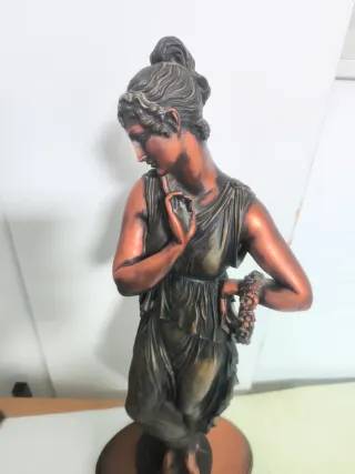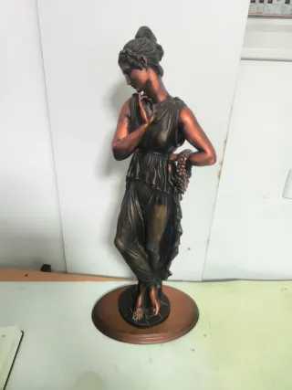 Elegante figura de Venus realizada en bronce. Representa a la diosa clásica con un diseño detallado y una base de madera. 65 cm. - Material: Bronce. - Base: Madera.
