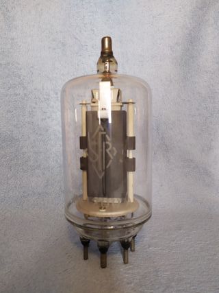 Válvula electrónica de equipo transmisor antiguo. - Componente de equipo de radio vintage. - Diseño de cristal y metal.
