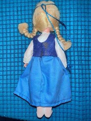 Muñeca de estilo folclórico suizo, con un diseño tradicional. -mide 18 cm -Ojos durmientes - Cabello rubio trenzado. - Vestido con delantal blanco y chaleco azul. -Hago los envíos desde Canarias por Correos. 📦 -Para envíos certificados a veces puede haber tasas de aduanas, y son a cargo del comprador.