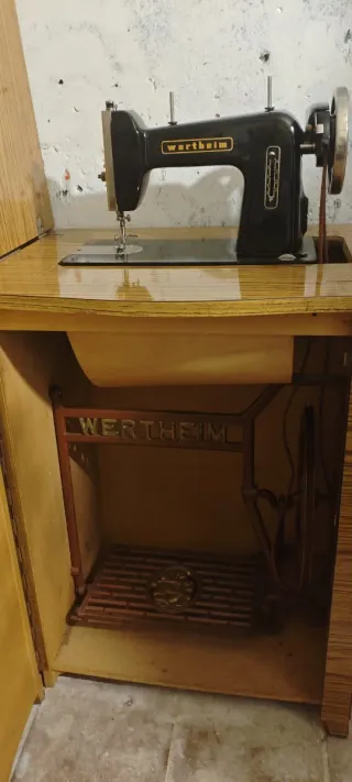 Máquina de coser antigua de la marca Wertheim, un clásico para coleccionistas o amantes de la costura tradicional. - Diseño vintage. - Estructura de metal. - Incluye mueble de madera.