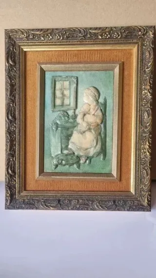 Preciosos cuadros antiguos con escenas de niñas. Son dos piezas en total, con marcos dorados y relieves. Ideales para decoración vintage o romántica.
