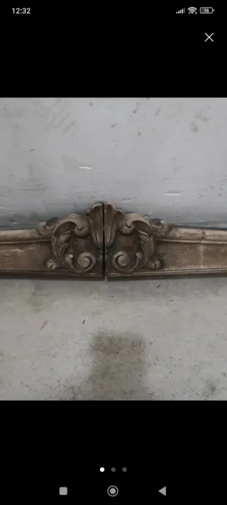 Conjunto de copetes antiguos de madera, ideales para restauración o decoración. - Pieza central con detalles ornamentales. - Pieza con diseño de concha. - Pieza con borde ondulado. - acepto oferta, precio por unidad.
