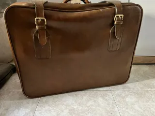 Maleta vintage de cuero, con un diseño clásico y elegante. - Material: Cuero genuino. - Color: Marrón. - Cierre con hebillas doradas.