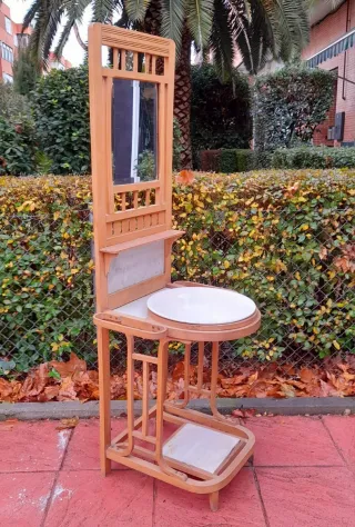 Palanganero vintage madera y mármol
