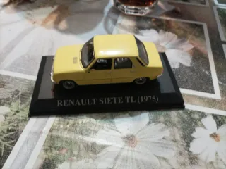 Réplica a escala del Renault Siete TL de 1975. Un modelo clásico para coleccionistas. - Color amarillo. - Base expositora negra con el nombre del modelo y año.