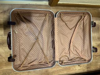 Maleta antigua con un diseño clásico y elegante. - Interior forrado con estampado. - Cintas de sujeción interiores. - Asas y cierres de cuero. Tal cual se ve en las fotos. Recogida en mano en Leganés o Cuatro caminos. O envío por Wallapop