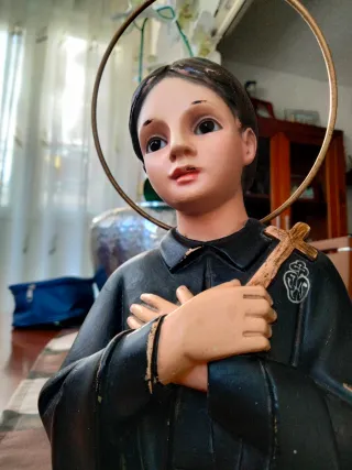Figura de Santa Gema, obra del Taller Olot. Una pieza con gran detalle. - Mide 18 cm, 22 cm , con aureola, ojos de cristal, pertenece a los talleres Olot - Representación de Santa Gema. - Fabricada en el Taller Olot.