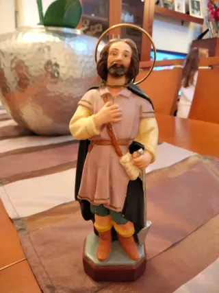 Figura religiosa de San Isidro Labrador, obra de Olot. Representa al santo con vestimenta tradicional. -Mide 17 cm , pertenece a los tallesres Olot. - Figura de San Isidro Labrador. - Fabricado en Olot.