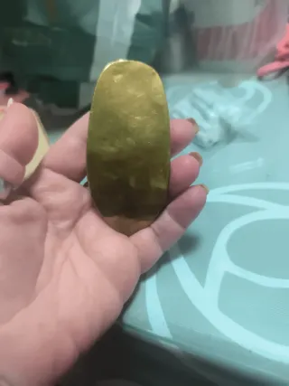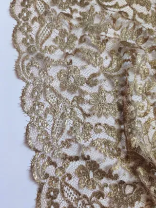 Retal de encaje de oro frances, bastante pesado. Mide 65×48 cm.