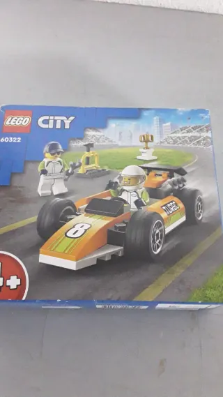 Set de construcción LEGO City 60322, el coche de carreras. - El producto está precintado y sin abrir. - Incluye figuras y accesorios para la carrera.